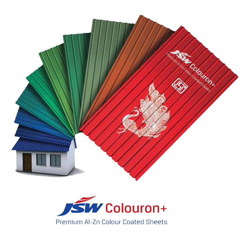 JSW Colouron+ is made from Pure Steel. This ensures maximum strength for every sheet of the colour coated steel. The consistency of the steel leads to very high quality and strength. JSW Colouron+ is light weight high tensile sheet. It offers a yield strength of min 550 mpa and 770 mpa to meet the needs of various application. The light weight, high strength combination requires lighter supporting structure and also reduces transportation cost and they are virtually maintaince free. JSW Colouron+ is India's only ISI certified colour coated sheets which shows the commitment of JSW towards world class products.