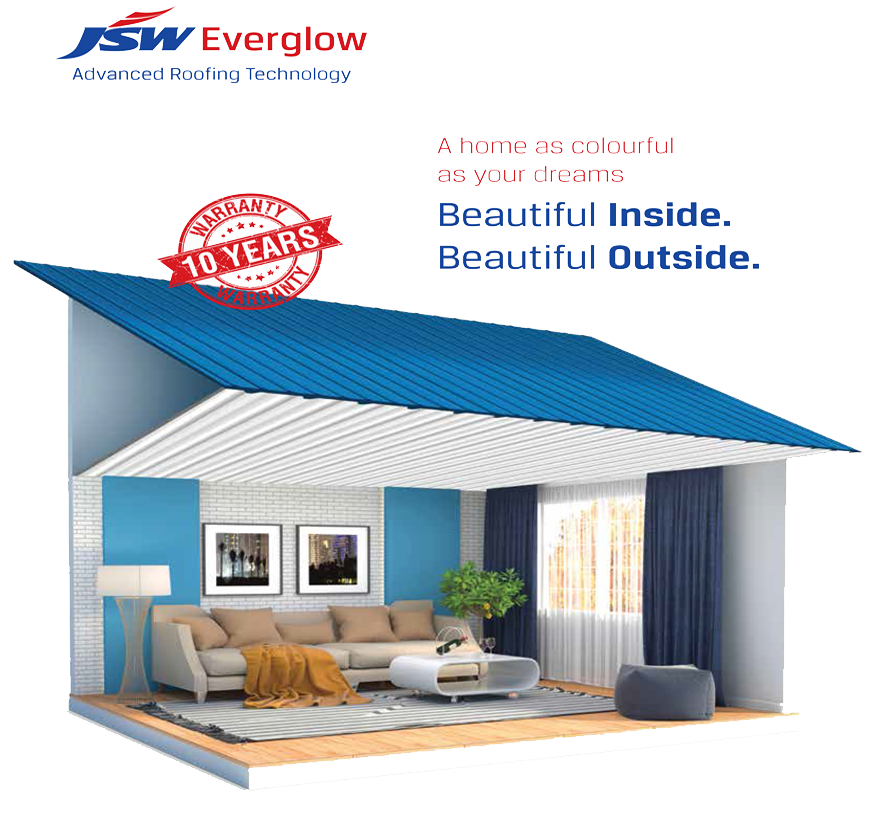 Presenting JSW Everglow colour-coated sheets. These premium quality sheets are not only colourful from the outside, but equally vibrant from the inside. They come in colors ranging from strawberry red, graphite grey, pearl white and midnight blue to name just a few.