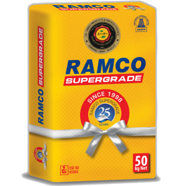 Ramco Supergrade is a PPC grade cement manufactured as per IS 1489 (Part 1):1991. PPC is a type of blended cement. It consists of 15-35% pozzolanic material, 4% gypsum and the rest is clinker. PPC as per BIS code is equivalent to that of 33 grade. Since the pozzolanic material reacts with calcium hydroxide liberated by the hydrating Portland cement and forms cementatious compounds, PPC makes the concrete more impermeable and denser. It can be confidently employed in construction of hydraulic structures, marine works, mass concreting etc. It protects concrete against alkali-aggregate reaction.